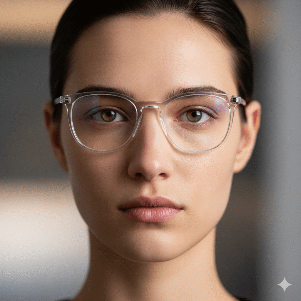 משקפיים שקופים מייצגים את הרוח המינימליסטית ששולטת בעולם האופנה כיום. הם נותנים מראה נקי ומעודן, מבלי להסתיר את הפנים או להתחרות עם האיפור והלבוש. בשונה ממסגרות כהות או צבעוניות, משקפיים שקופים מאפשרים להתמקד בתווי הפנים הטבעיים, מה שהופך אותם לאידיאליים עבור אנשים שמחפשים סטייל עדין אך מודרני. על פי מגמות 2025, מסגרות שקופות מקבלות טוויסט צבעוני קל – כמו גוונים עדינים של כחול או ורוד שקוף – שמוסיפים עומק מבלי לפגוע בפשטות.